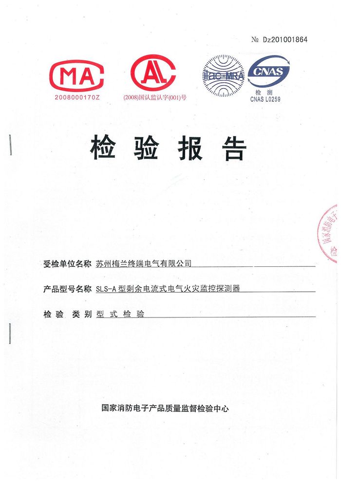 SLS-A型電氣火災監(jiān)控資質證書