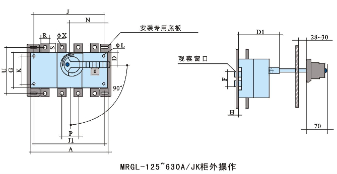 | A | B | C | D | D1 | E | G | ΦL | J | J1 | K | N | P | R | S | T | U | ΦX | Y | F | H |