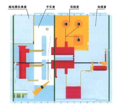 開關(guān)柜的外殼和隔板是用敷鋁鋅板經(jīng)數(shù)控機(jī)床加工和折彎之后連接而成。因此裝配好的開關(guān)柜能保證結(jié)構(gòu)尺寸的統(tǒng)一性。開關(guān)柜被分隔為斷路器室、主母線室、電纜室和繼電器儀表室,各部分以接地的金屬板分隔。