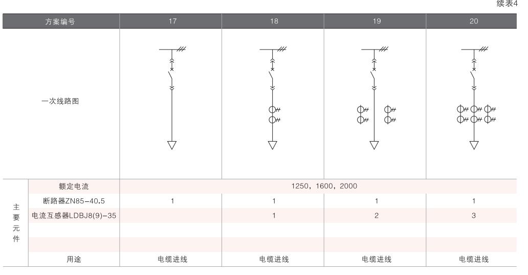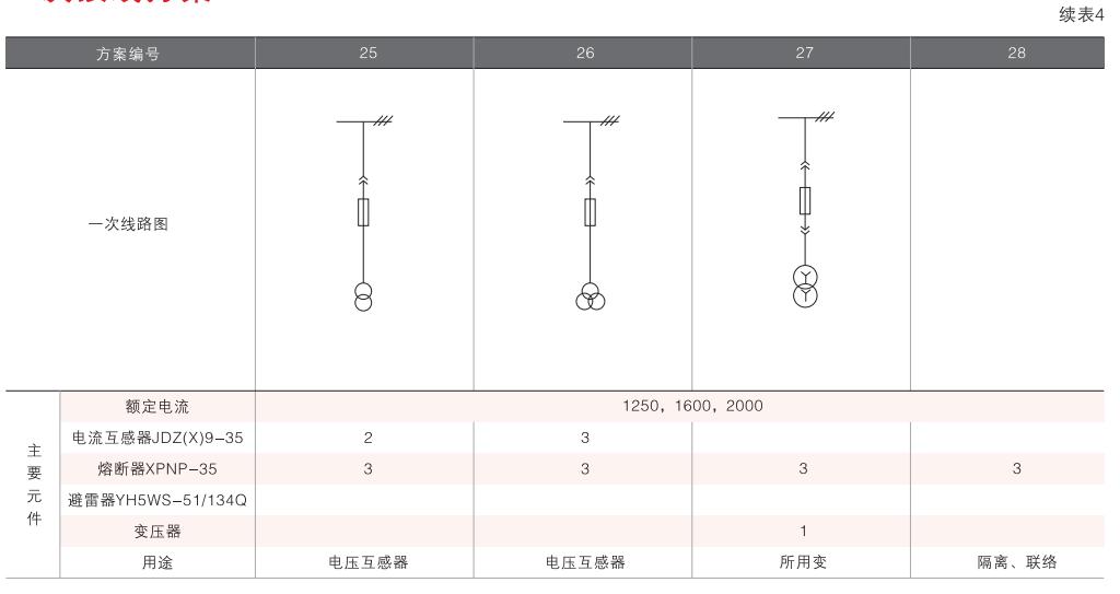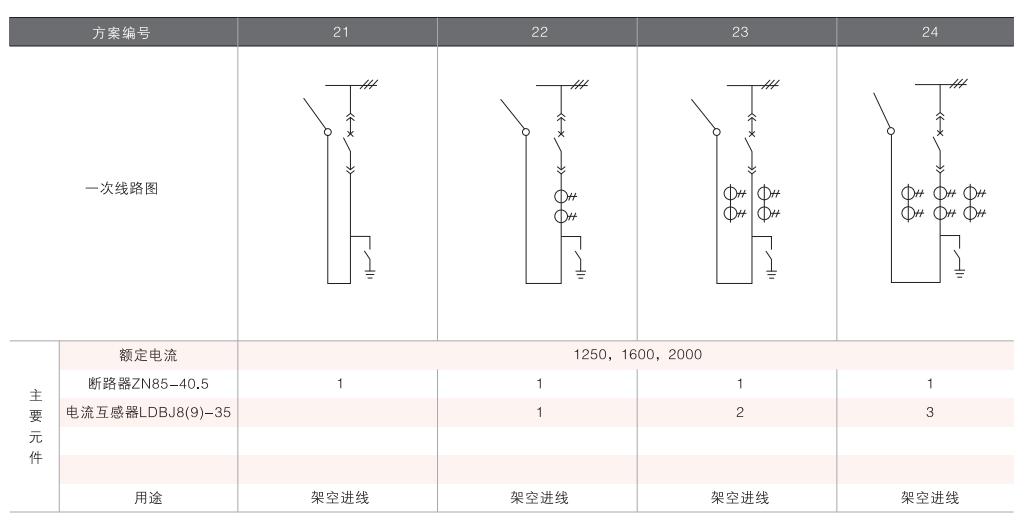 開關(guān)柜的一次接線方案有27個(gè)常用典型方案,能滿足用戶電纜進(jìn)出線、架空進(jìn)出線,聯(lián)絡(luò)級(jí)測量、保護(hù)等的需要,若有不同與現(xiàn)有方案的其他方案的需要,請與廠方協(xié)商。